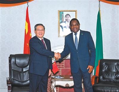 李强指出,中方愿同赞方以零关税举措在赞落地为契机,扩大双边贸易规模,发掘矿业、新能源汽车、人工智能等产业合作潜力,加强医疗卫生、农业、人力资源开发等民生领域合作,提升民众对中赞合作的获得感。双方要以2026年“中非人文交流年”为契机,密切各层级友好往来,深化文化、教育、旅游等交流合作,打牢两国合作的民意基础。中方愿同赞方加强司法、警务、执法等合作,加强对两国合作的安全保障。坦赞铁路激活是中、坦、赞三国人民的共同心愿,三方要共同打造好这一高质量共建“一带一路”标志性项目,加强政策协调,共同做好后续综合开发,带动沿线国家及地区实现更好发展。当前,单边主义、保护主义行为愈演愈烈,严重冲击国际体系和世界经济。中赞应当加强多边协调配合,同广大全球南方国家一道,维护国际经贸秩序和公平正义,捍卫共同利益。