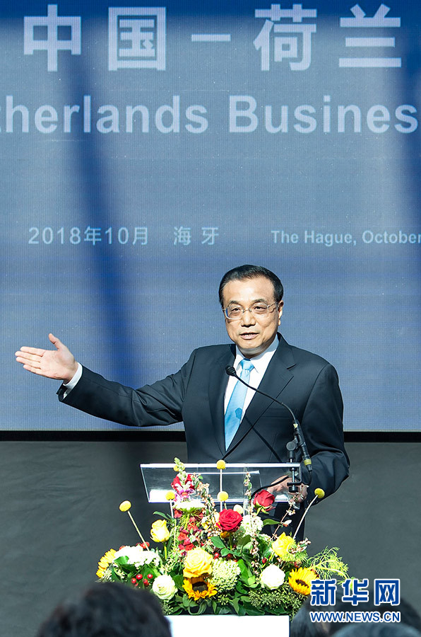 当地时间10月16日中午,国务院总理李克强在海牙市立博物馆与荷兰首相吕特共同出席中国—荷兰经贸论坛并发表主旨演讲。