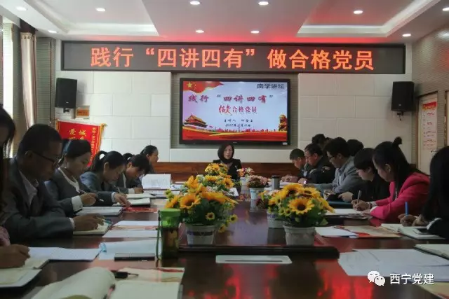 学校践行“两个绝对”作为我们抓“两学一做”的重点工作去做,规范党内政治生活,把“十条措施”作为我们推进党员的工作、推进党员的思想认识以及推进党员在社会上的贡献的有力抓手。在“南学讲坛”的品牌之下,我们有家长百家讲坛、家长上党课、有党员教师的微党课、党员教师的示范课、引领课,把“南学讲坛”作为我们学校培训老师、推动我们党建工作的一个重要平台。