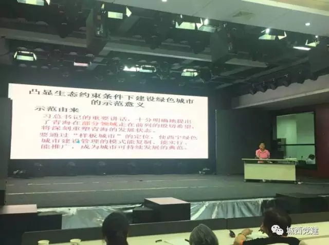 会上,刘红梅老师围绕《践行“两个绝对”打造绿色发展样板城市》这个主题,为大家做了精彩授课。宣讲会结合创新绿色发展理念以及打造绿色发展样板城市何以花落性能等方面,要求全体党员干部要更加紧密地团结在以习近平同志为核心的党中央周围,牢固树立“四个意识”,始终对党绝对忠诚,坚决与以习近平同志为核心的党中央保持绝对一致,在中央和省委省政府的坚强领导下,以“干在实处、走在前列”的精神,不忘初心、继续前进,力争早日建成绿色发展样板城市,共同谱写中华民族伟大复兴中国梦幸福西宁篇章。。