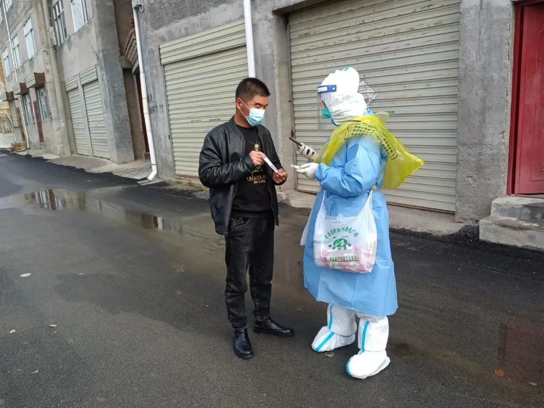 “小杨,我家小宝高烧不退,家里备用的药品用完了,我现在特别着急,你能帮我找点布洛芬混悬液吗?”接到求助电话时,负责朱南村封控区抗疫专班的市教育局“墩苗干部”杨富龙刚刚和“战友们”刚完成当日居民生活垃圾的清运,电话那头宝妈焦急惶恐的求助是那么让他揪心,刚刚晋升“奶爸”的他深深懂得6个月的宝宝晚上烧起来有多凶险,也对电话里这位妈妈的焦虑感同身受。于是,一通通电话从驻点帐篷里打出,牵动着一级级工作人员的心,在村镇干部的协调帮助下,孩子的退烧药以最快的速度送到了求助宝妈的手上。就是这样,他在一次次的抗疫工作中走过了巴浪村、朱北村、乙其寨村……,从秩序维护员到信息采集员,从物资搬运工到防疫消杀员,从低风险村到两次入驻高风险专班,那个正背着大大的消杀喷雾器一步一步独行在大堡子村巷子里的大白是他,那个背着核酸采集管大包正挨家挨户喊吴仲村村民做核酸的大白是他,那个扛着一袋面、手拎一桶油上朱南村王爷爷家二楼楼梯的大白也是他,他和同志们风雪无阻走过一个个村子,用“勤脚步”丈量为民初心,用共产党人敢于斗争、善于斗争的精神与困难对抗、与疫情较量,用高高飘扬的党旗守护着村民们的“岁月静好”。