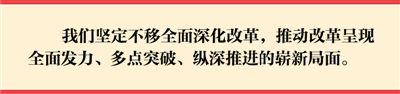 惟改革者进。复兴路上,我们依然面临众多风险挑战,全面深化改革任重道远。坚持人民至上,蹚出新路子,迈开新步子,以改革的千钧之力解难题、补短板、清障碍,中国道路必将越走越宽广。