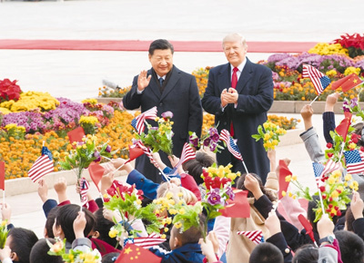 11月9日,国家主席习近平在北京人民大会堂东门外广场举行欢迎仪式,欢迎美利坚合众国总统唐纳德·特朗普对中国进行国事访问。