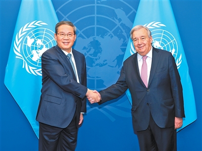 当地时间9月24日,国务院总理李强在纽约会见联合国秘书长古特雷斯。