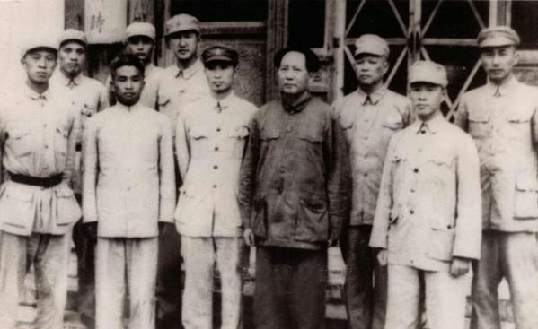 △1949年8月,毛泽东主席接见华东军区海军代表。前排左三为张爱萍,前排左一为黄胜天