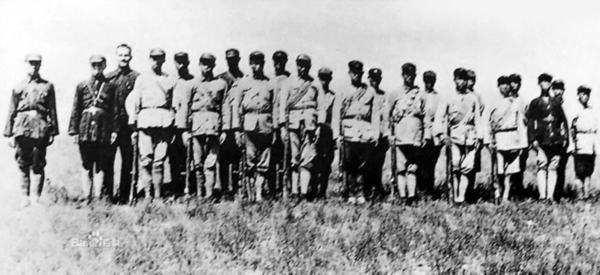 △埃德加·斯诺与强渡大渡河官兵合影(1936年)