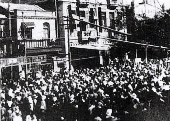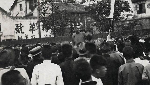 △上海街头,学生向民众做反帝国主义的演讲宣传