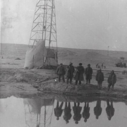 1958年9月13日,1219钻井队在柴达木盆地北部冷湖地区钻探的“地中四井”突然发生井涌,继而发生了强烈的井喷,日喷原油800吨,由于没有储油设备,冷湖探区只好组织人员筑堤储油,将喷出的原油围堵成一片“油海”。
