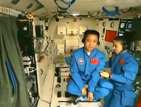王亚平:现在我们是在远离地面300多公里的天宫一号实验舱里向大家问好。同学们都知道失重是太空环境中最独特的现象,那么首先呢,让我们的指令长来给大家表演几个高难度的动作吧。