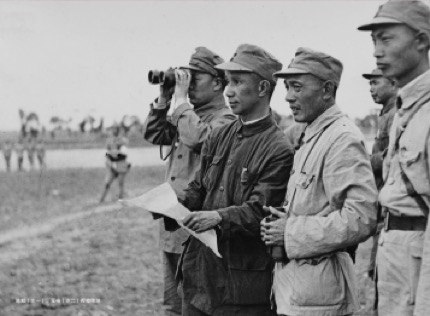 △图为孟良崮战役中,粟裕等同志视察阵地