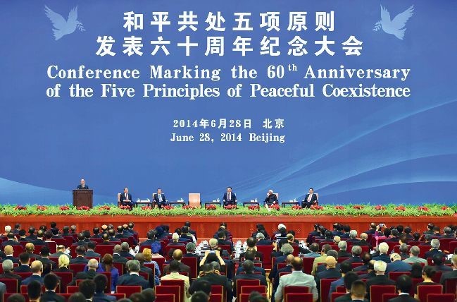 2014年6月28日,和平共处五项原则发表60周年纪念大会在人民大会堂举行,中国国家主席习近平出席大会并发表题为《弘扬和平共处五项原则 建设合作共赢美好世界》的主旨讲话,深刻地阐述了和平共处五项原则的历史性贡献和重大现实意义。