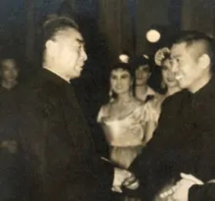 △1963年周恩来总理观看天津歌舞剧团演出后,与曹火星亲切交谈