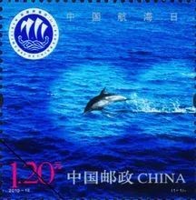△中国邮政于2010年7月11日发行《中国航海日》纪念邮票1套1枚,这是我国第一套纪念中国航海日为主题的邮票。