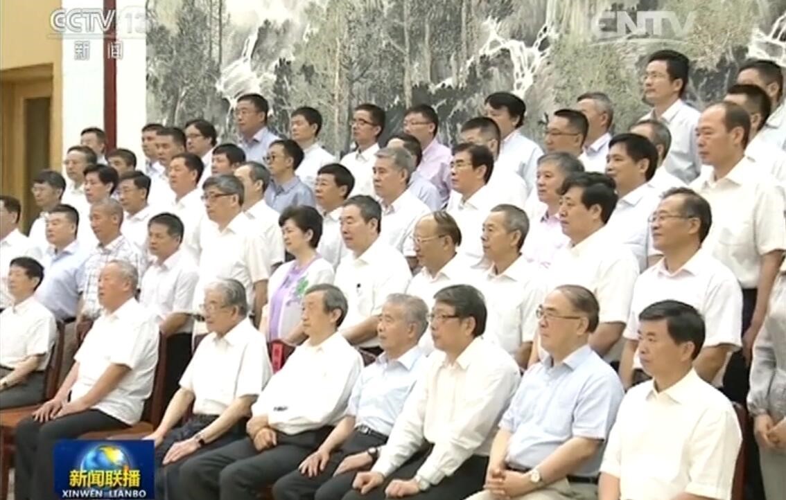 △1987年夏天,中央首次邀请全国科技界14位专家及家属到北戴河休假。图为邓小平接见部分科学技术工作者代表