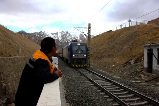 △老铁道兵张生林在关角隧道入口外注视着往来的列车