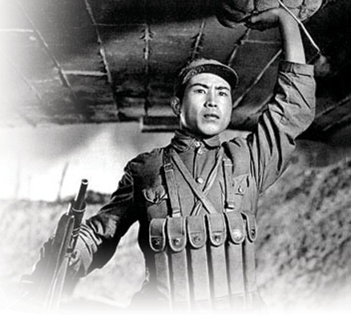 1948年5月,为了配合即将开始的辽沈战役,东北人民解放军第11纵队奉命攻打河北隆化,以打通前往东北的通道。5月25日下午3点30分,攻打隆化的第二次总攻开始,六连战士向隆化中学发起冲锋时,突然遭到一座桥型碉堡的疯狂扫射。眼见战友们不断在枪声中倒下,19岁的董存瑞挺身而出,冲向碉堡。