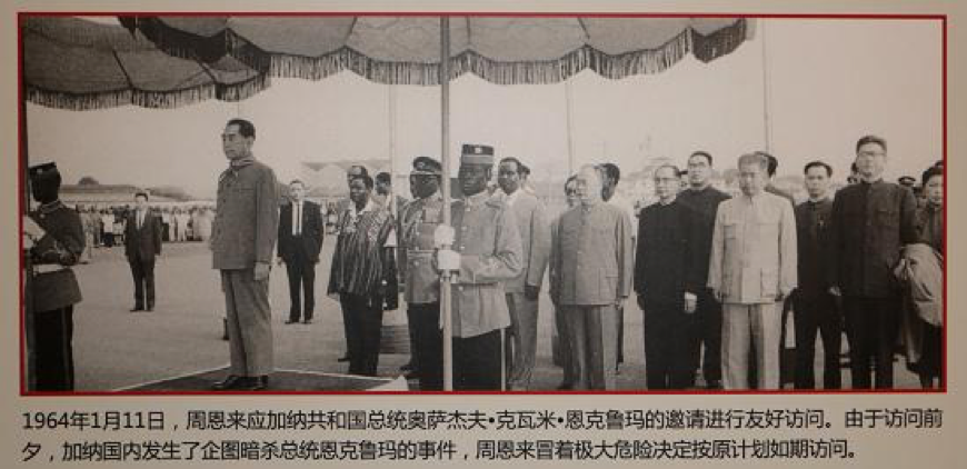 1964年2月5日,周恩来率领的中国代表团结束了非洲之行最后一站——索马里的访问,从而圆满完成了出访非洲十国的外交之旅。在访问加纳期间,周恩来提笔写下“对外经济技术援助八项原则”的提纲。八项原则坚持平等互利、共同发展,不附带任何政治条件,这样的无私援助在受援国中引起强烈的反响。