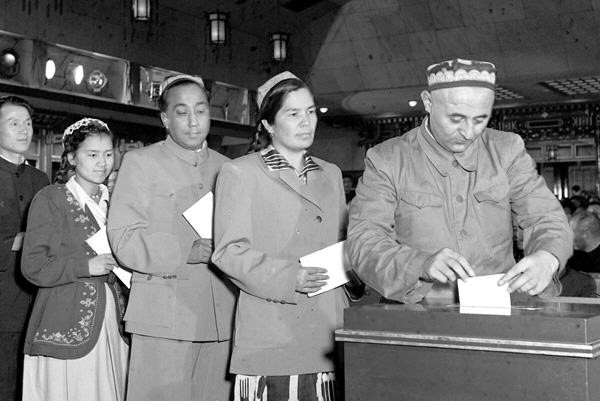 △来自新疆的全国人大代表在投票