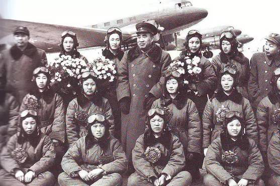△朱德总司令与第一批女飞行员合影