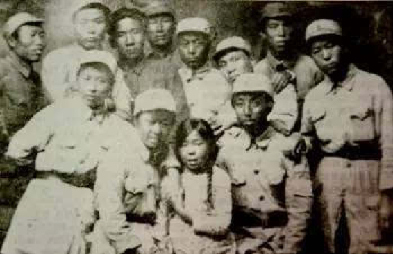 △小说《铁道游击队》的作者刘知侠(后排左三)与铁道游击队队员们合影