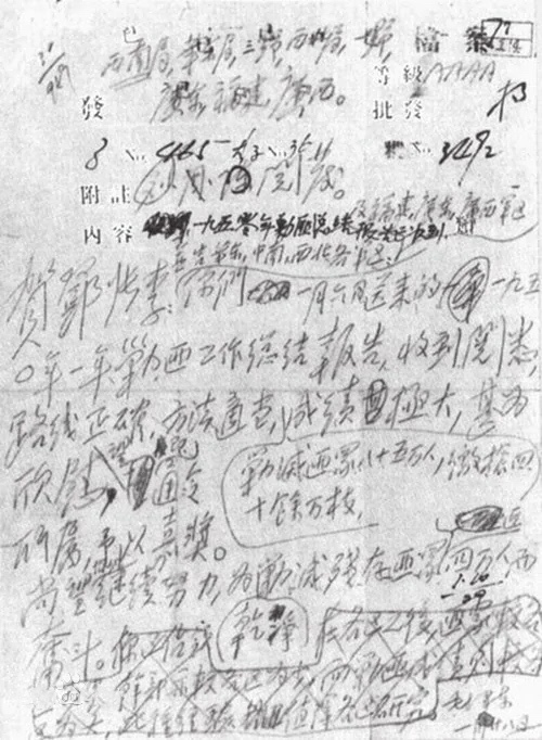 △毛泽东关于嘉奖西南剿匪部队的电报手稿