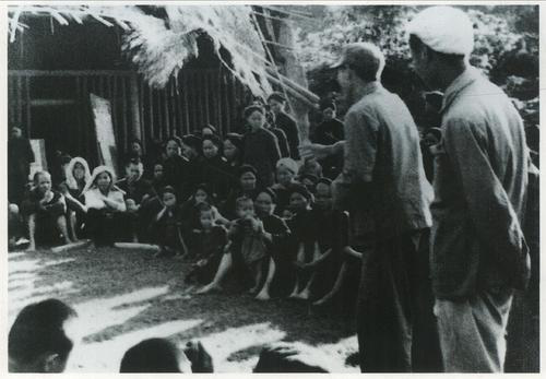 △解放军剿匪部队在陕南地区深入群众,宣传党的方针政策